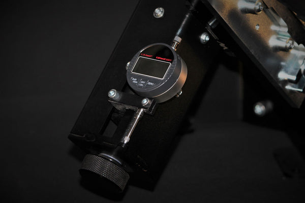 Depth adjustment is made using the knurled aluminium knob. The fine thread and oversize UHMWPE nut allows for smooth, acute adjustments and will hold in any position without the need for a locking mechanism. The Strap on Surface grinder includes a dial gauge bracket and base plate, designed to fit any standard 8mm-stem dial gauge, making it easy to achieve precision thicknesses.