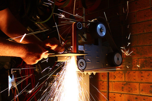 The kit is based around the tried and tested Shop Mate 2x48" Belt grinder and includes an Angle Adjustable Rest, a 6mm Plunge Platen and a selection of belts to kick your knife making into the next gear.